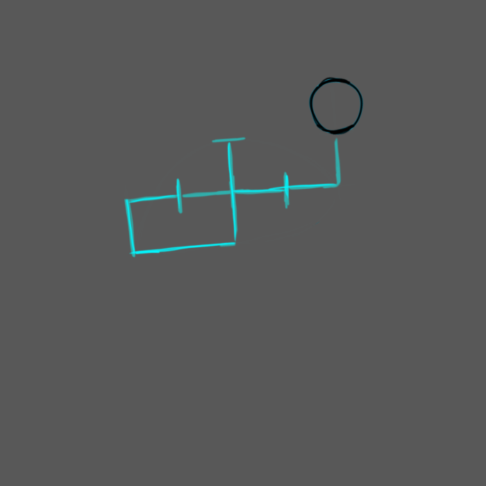 We’ll start with a circle and base the proportions off of the diameter of that circle. We’ll call the diameter of the circle 1 unit, so make sure you know how big your circle is. Next we’ll be drawing some guidelines, so make sure to either draw them lightly or on another layer. Then straight down from the circle, we draw a line 1 unit long. 90 degrees to the left we’ll draw a line 4 units long, and perpendicular to that in the center we’ll draw a 2 unit long line. Connect the bottom and left lines to form a rectangle in the bottom left corner.