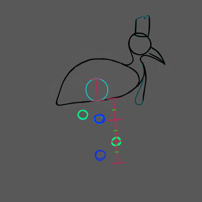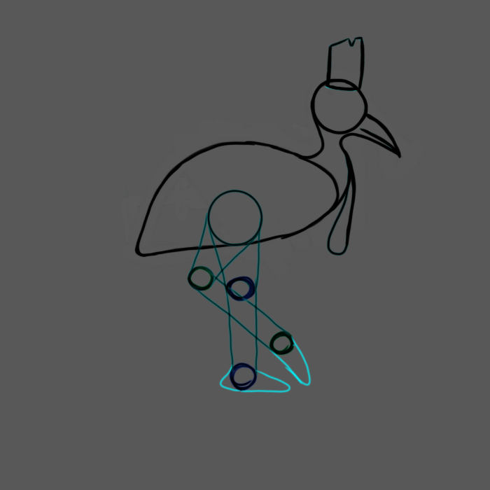 Cassowaries only have two front facing toes, so we only have to add one toe behind the first.