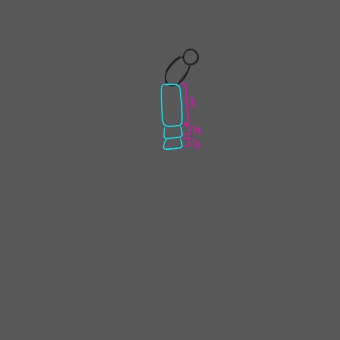 Draw a small circle. This will be the head. Make sure you know the size of this circle, we will call it’s diameter 1 unit.