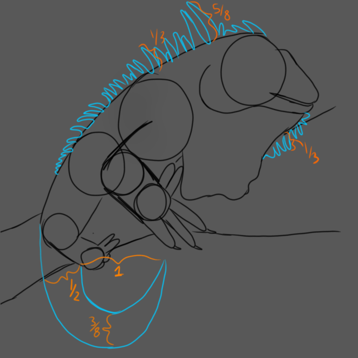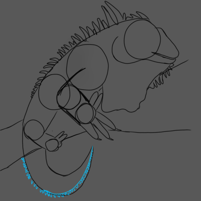 b) Along the chin flap, draw some 1/3 tall spikes that get slightly shorter at either end.