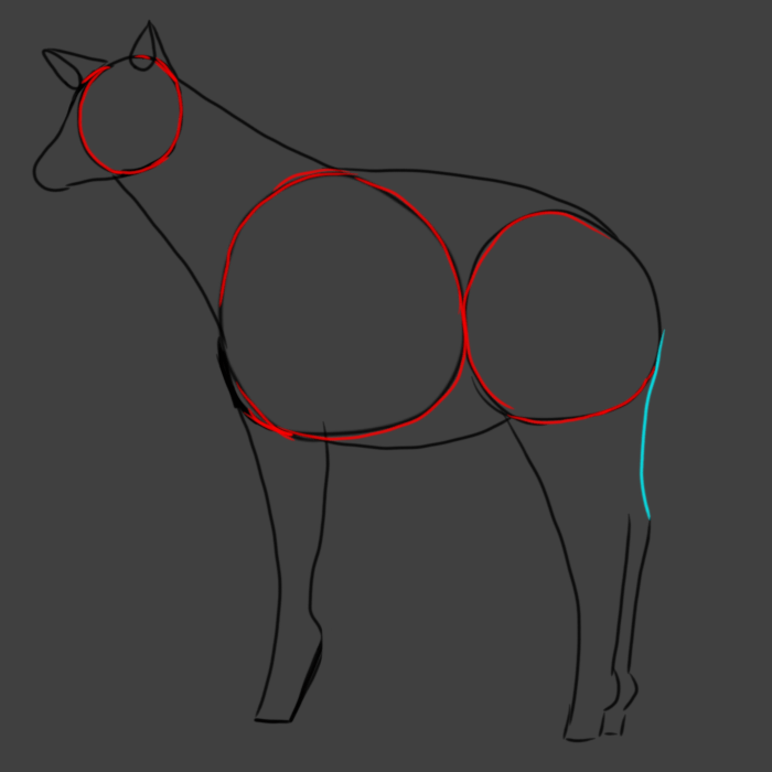 Connect the far hind leg to the rump with a slight inward curve.