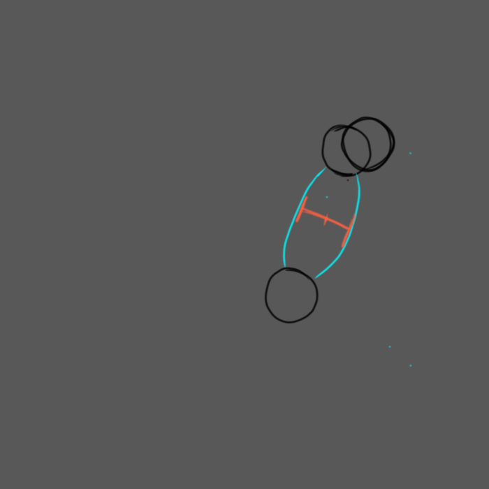 Draw two outwards curves between the head and lone circle. They should be 1 unit away from each other at the peaks.