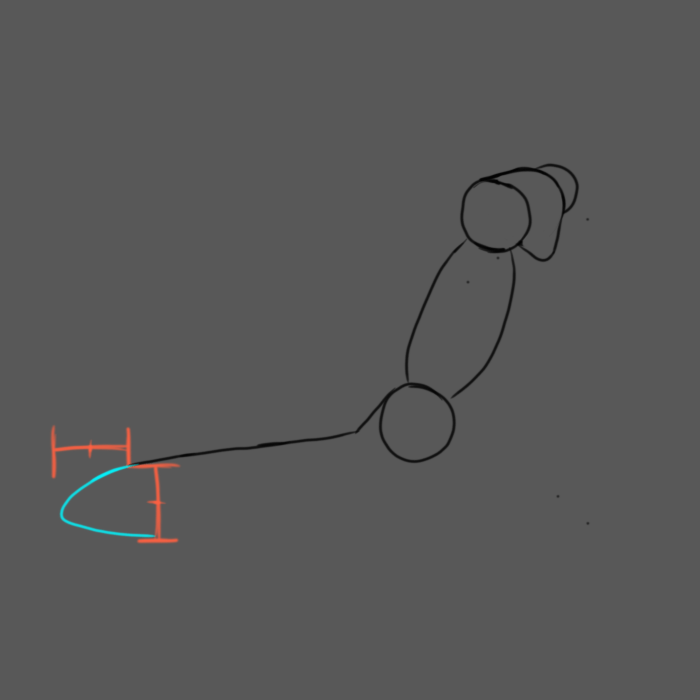Draw the back legs with another set of L shapes. The front should be 2 units down, and the back should extend 1 unit past the body.