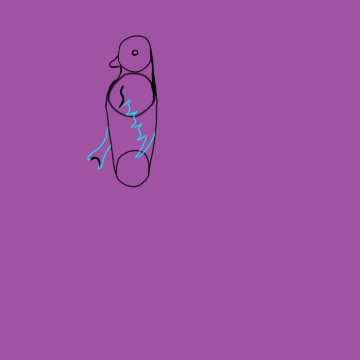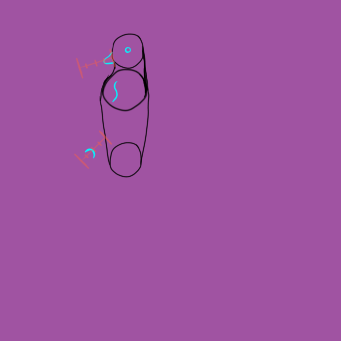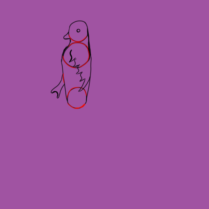Erase the interior parts of the circles, connect the legs to the body, and erase the outer tip of the bottom circle.