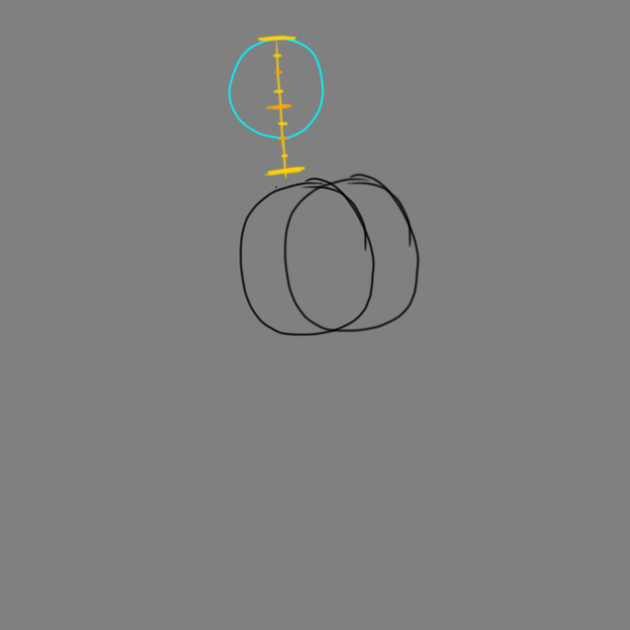 Start by drawing a circle. This will be the chest. Make sure you know the diameter of the circle, we will use it to determine proportions for the rest of the drawing. We will call the diameter 1 unit.